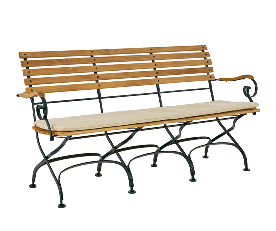 Just like the CLASSIC range, which has been one of our best-selling lines for many years. Its materials are of top quality, as we have continuously developed them over time. The frames are made from galvanized, powder-coated steel. The solid teak slats are bolted together with fully weatherproof stainless steel. We offer matching upholstery covered in fabrics from our extensive range. A wide selection of tables with solid teak tops and an attractively designed garden lounger mean you are really spoiled for choice.